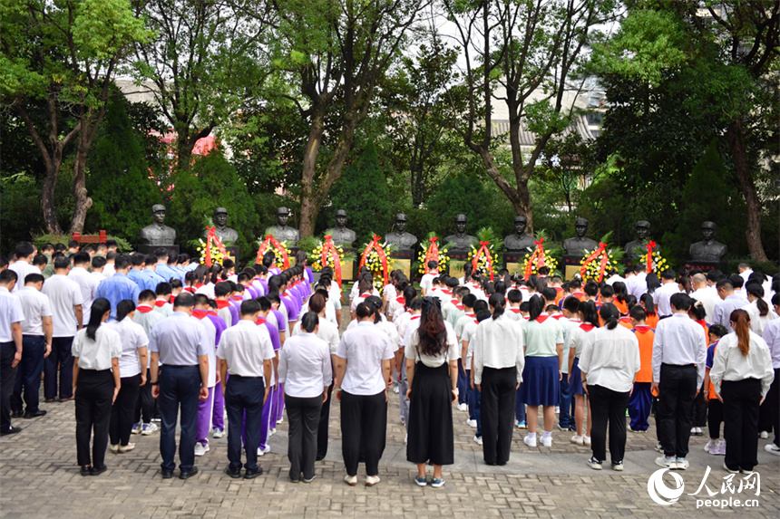 井岡山市井岡山紅旗廣場,來自吉安市的2600余名高一新生在開展新學期“我的井岡行”紅色研學活動。人民網 朱海鵬攝 江西井岡山:紅色研學游 照亮成長路