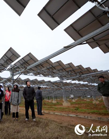 人民網靖安11月23日電(秦海峰 時雨)23日下午,參加“全國網絡媒體宜春昌銅四縣行”采訪的網媒記者和網絡大V來到靖安縣仁首鎮光伏發電項目的所在地采風,看到太陽能電板在光伏板支架上層發電,板下種著農作物,網媒記者和網絡大V們稱贊,這種模式太棒了,一塊土地發揮了兩項功能,這種做法非常值得推廣。