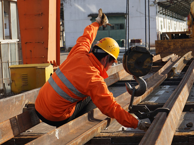 作業人員向操作機械工示意機械手夾安裝完畢。許揚文 攝 “小劉,吊臂下無人員,吊臂移動位置范圍內人員也已撤離,可以起吊!痹谧鳂I人員安裝好機械手夾并撤離后,贛州工務段材料科贛州料運班工長蘇斌對操作機械工小劉邊比手勢邊說。 “嗚——”吊臂在小劉嫻熟的操作下開始升高伸長,不一會兒,一根長25米,重…[詳細]
