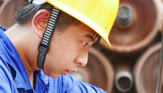 與普通作業面不同,這里橫跨江面,橋梁混凝土吸收的熱量伴隨著河水蒸發帶來的熱氣,讓人又曬又悶。