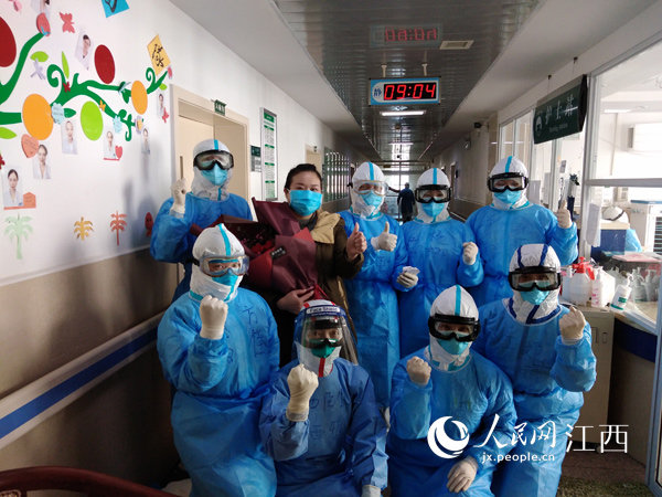 “謝謝你們!希望江西醫療隊早日凱旋,一個不少地平安回家!2月20日上午,在隨州市曾都醫院,由江西省對口支援隨州醫療隊曾都小組全程診療的第一例治愈患者順利出院。據悉,這也是江西醫療隊全程診療的首例出院患者。臨走前,她不停地對醫護人員訴說著自己的感謝,“你們救了我,可我連你們的樣子都沒見過!