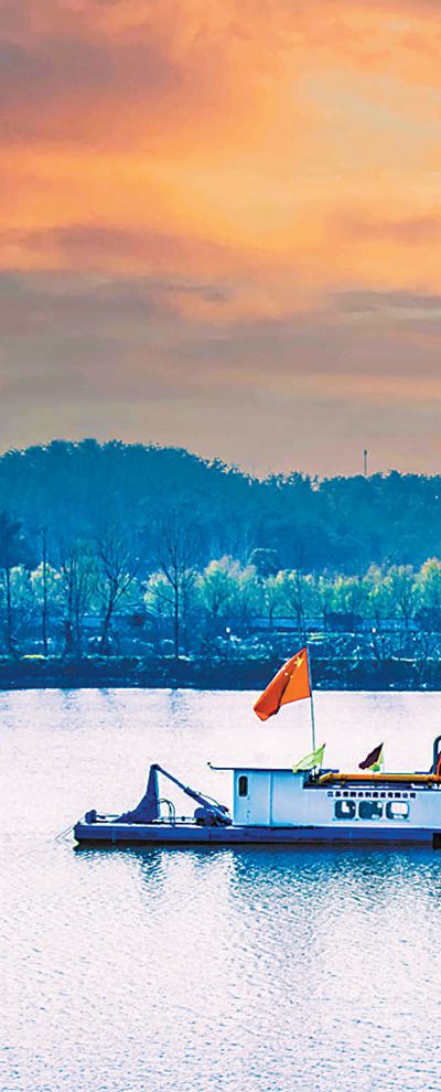 近日,湖北省隨州市府澴河上游的白云湖上,絞吸船在清理水下污泥。