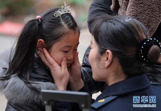 即將前往南昌工作的王阿靜和大女兒告別(1月25日攝)。新華社記者 彭昭之 攝