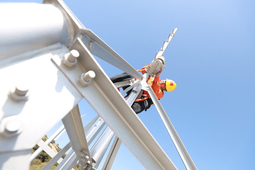 平潭海峽強風天氣多,空氣濕度、鹽度大,通信設備容易產生螺帽松動、接觸不良等故障,因此,定期登塔檢查設備穩固和運行狀況尤為重要,攀登鐵塔也就成為了邱民芳班組的日常。