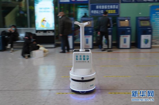 2月8日,機器人在南昌西站候車大廳內進行消殺。