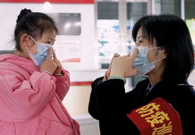 王思虹在候車大廳進行防疫巡查,教小朋友正確佩戴好口罩。陳珊娜 攝
