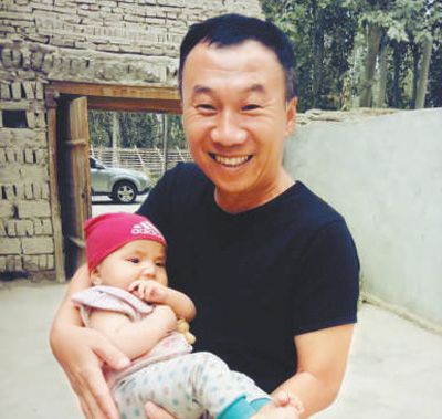天津援疆干部席世明抱著維吾爾族小姑娘“小石榴”(資料照片)。