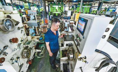 5月17日,江西省贛州市一家企業正在趕制出口訂單,產品為精密小型扁平漆包線。
