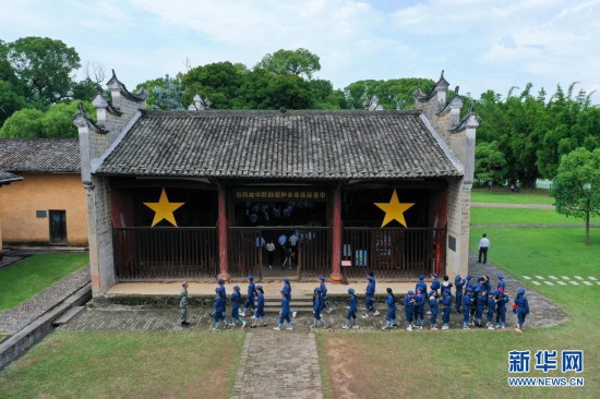 5月22日,人們在瑞金市葉坪革命舊址群參觀第一次全國蘇維埃代表大會會址(無人機照片)。
