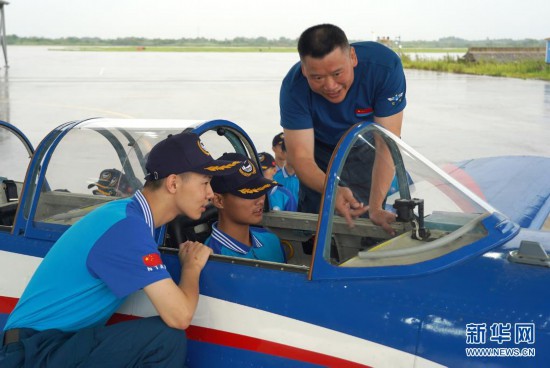 7月18日,退役飛行員給學生們介紹民用版初教六飛機座艙。
