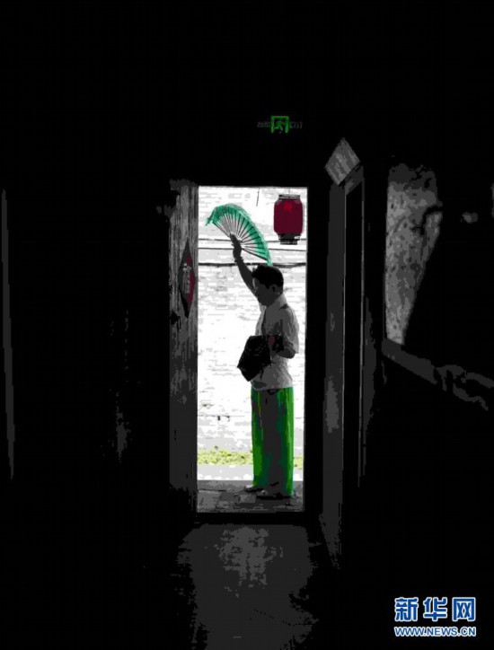封永泉在景區一家餐館內練習(7月22日攝)。