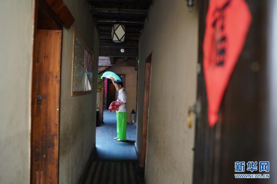 封永泉在景區一家餐館內練習(7月22日攝)。