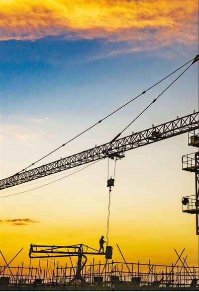 近日,江西省九江市都昌縣加快惠民項目建設,提升群眾獲得感、幸福感。圖為某安置小區項目工程建設工地上,工人們在晚霞的映襯下緊張施工。