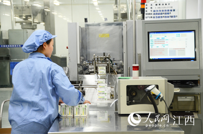 華潤江中的包裝線上,工人將中醫藥成品進行包裝出庫。人民網 時雨攝