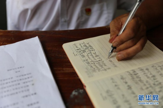 8月17日,陽昌紹在辦公室內記錄當日糾紛調解的情況。新華社記者 胡晨歡 攝