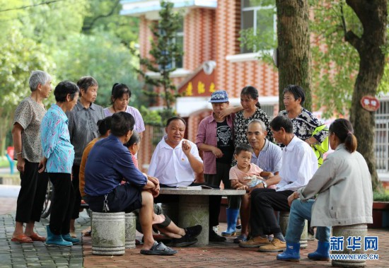 8月17日,陽昌紹(中)為珠亭村的百姓宣講民法典知識。新華社記者 胡晨歡 攝