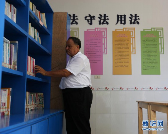 8月17日,陽昌紹在鄉鎮的圖書室查閱法律知識相關的書籍。新華社記者 胡晨歡 攝