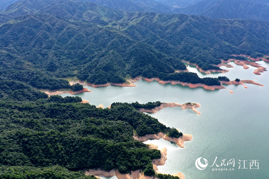 航拍江西宜黃觀音山水庫:山青水綠 峽谷綿長