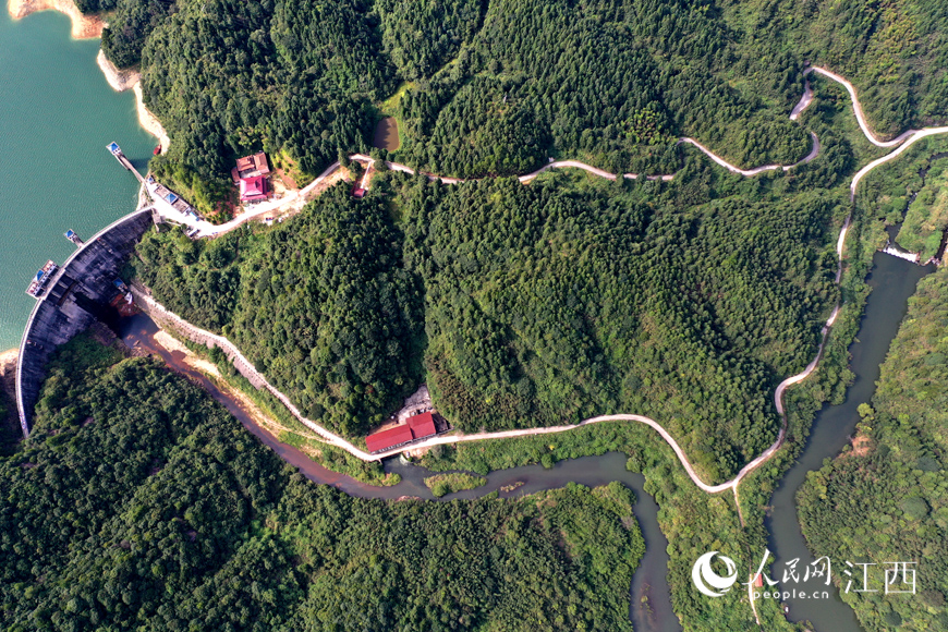 航拍江西宜黃觀音山水庫:山青水綠 峽谷綿長