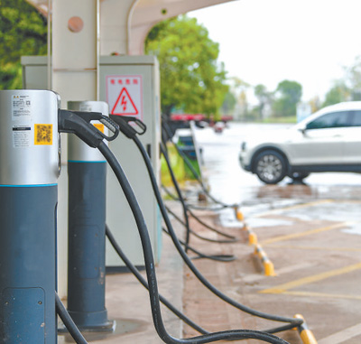 江西贛州繞城高速贛州南服務區電動汽車充電樁方便車主使用。劉 青 胡江濤攝影報道