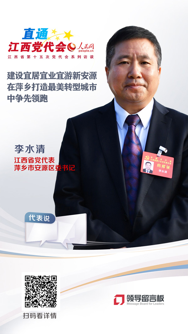 【編者按】昂首奮進新征程,接續奮斗再出發。在江西省第十五次黨代會召開之際,人民網推出“作示范 勇爭先 對話黨代表”系列訪談節目,邀請黨代表話心聲、謀發展。今天邀請到李水清代表,以下為訪談實錄: