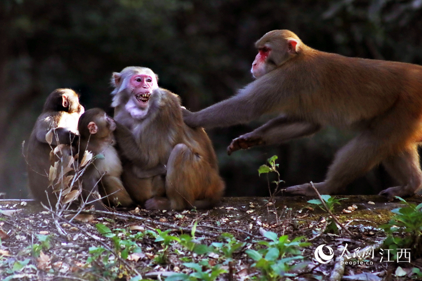 獼猴在山林間打鬧嬉戲。何賤來攝