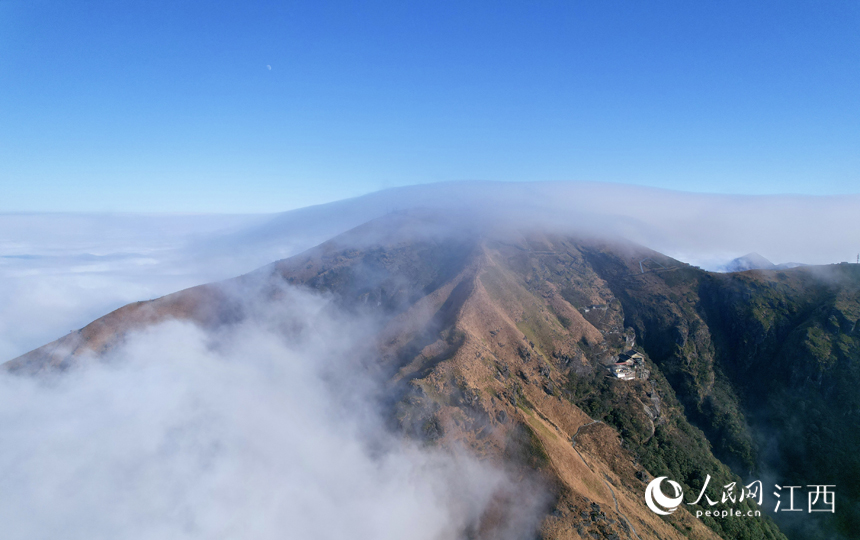武功山風景名勝區出現罕見的超級“瀑布”云海景觀。謝凌陽攝