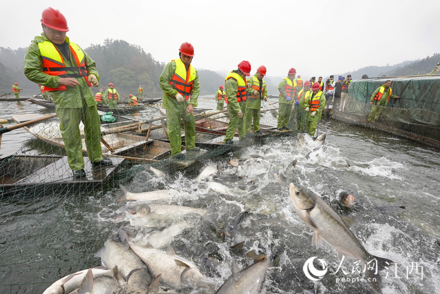 仙女湖迎來新年巨網首捕。趙春亮攝