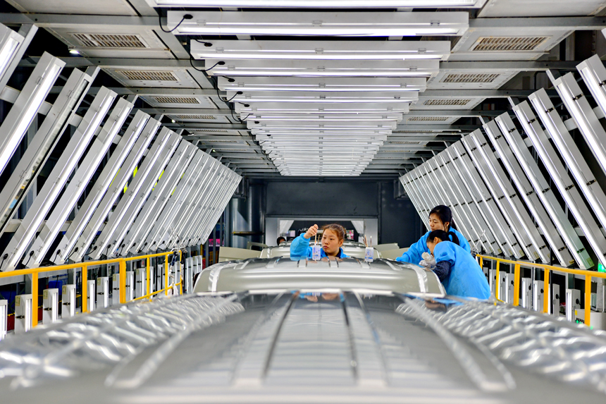 高職畢業生成為技能型工人,在車間加工新能源商用車車廂。朱海鵬攝