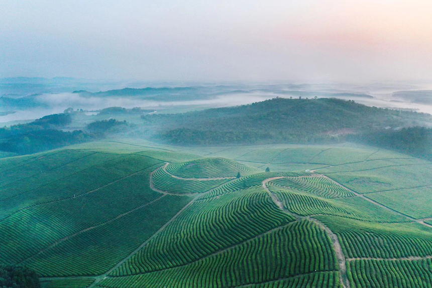 航拍五星茶場,宛如一幅山水畫。陳旗海攝