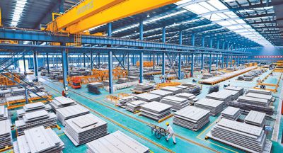 圖為當日,江西省湖口縣高新園區內的裝配式建筑公司生產線正在趕制訂單產品。