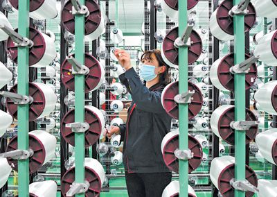江西省贛州市上猶縣新材料科創產業園,工人在加工生產電子級玻纖復合材料。
