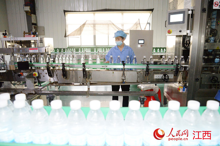 近日,工人在位于江西南豐縣傅坊鄉田陀村的江西巖縫泉農產品有限公司生產車間工作,趕制訂單產品。袁智攝
