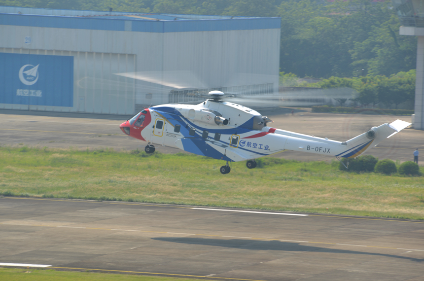 “吉祥鳥”AC313A通過螺旋槳升力離開地面。張翼攝