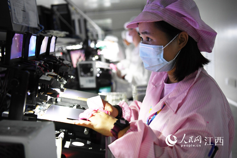 贛州經開區一家手機屏幕生產企業內,工人們正在作業。 人民網 時雨攝
