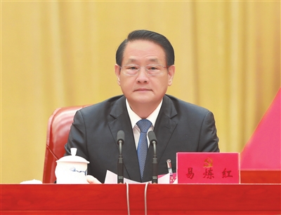 6月30日,省委書記易煉紅在中國共產黨江西省代表會議上作講話。記者 海 波攝