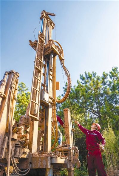 8月15日,江西省吉安市吉水縣八都鎮東坊村,施工人員進行抗旱井打井作業。謝 東攝(影像中國)
