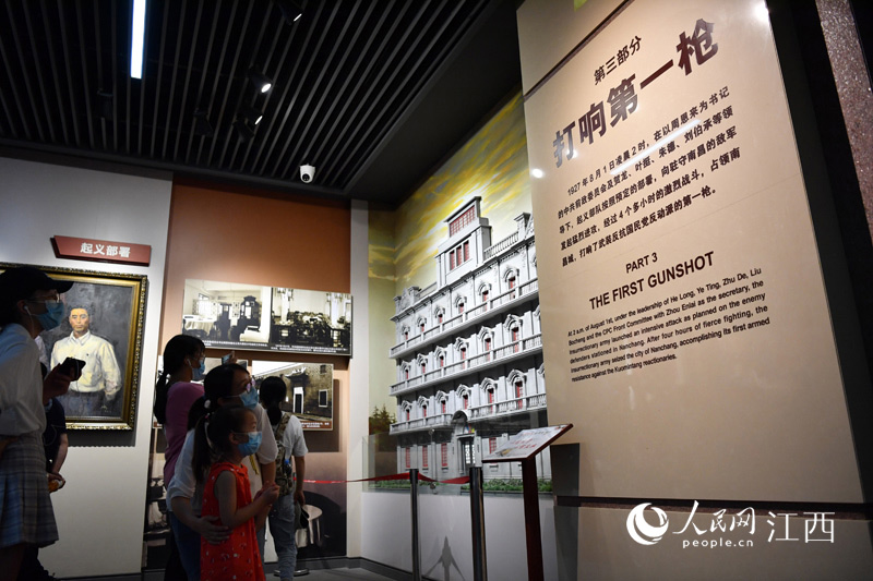 南昌八一起義紀念館內,游客在參觀。人民網 時雨攝
