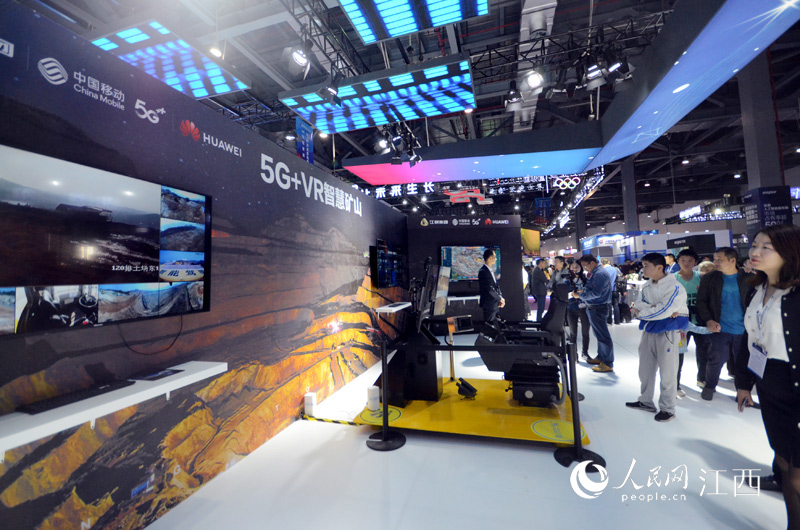 2021年10月,在南昌舉行的世界VR產業博覽會上,“5G+VR”成為展會熱點。人民網 時雨攝
