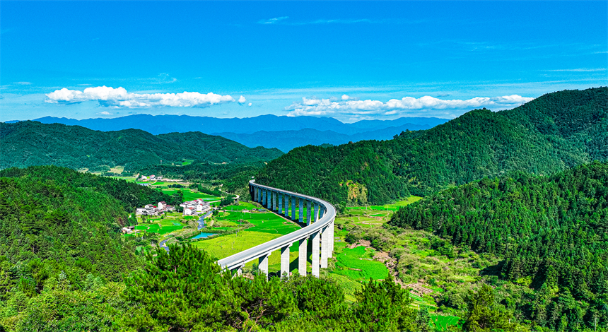 宜黃縣加快建設現代化交通基礎設施,搭建起了內外綜合交通路網。尹文兵攝