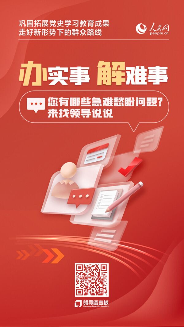 群眾利益無小事。您有哪些亟待解決的困難?歡迎來人民網“領導留言板”留言,把您的困難事、煩心事說一說。