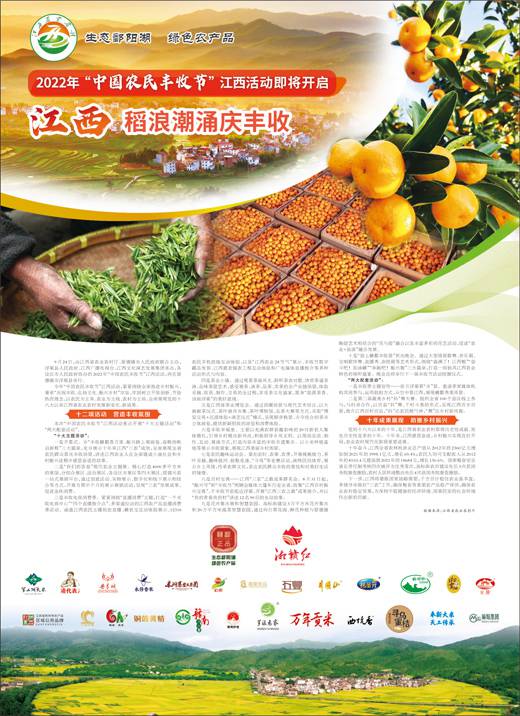 三是豐收電商消費季。緊緊圍繞“直播消費”主題,打造“一個豐收電商中心”“四個直播推介點”、多渠道拉動的江西農產品直播消費季活動。涵蓋江西農民主播助農直播、贛農寶互動體驗展示、12316農民手機技能互動體驗,以及“江西農業24節氣”展示、豐收節數字藏品發售、江西惠農強農工程互動體驗和廣電媒體直播推介等多種活動形式與內容。