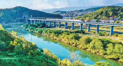 11月1日,江西省萍鄉市湘東區老關鎮仁村,錯落有致的鄉村民居、婀娜多姿的綠水青山、澄澈明凈的藍天白云,與飛速穿梭的高鐵列車一起,構成一幅美麗祥和的新農村畫卷。
