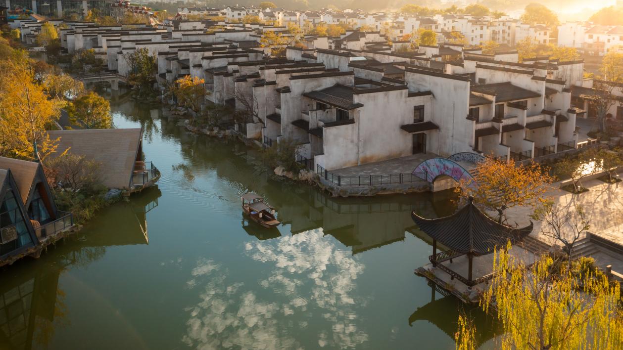 當晨曦的微光,點亮小鎮的邊緣,屬于最美鄉村醉美秋日便開始了。白墻黛瓦與金黃的銀杏、火紅的楓樹交相輝映,撐一條晃晃悠悠的搖櫓船,漫游小鎮,把濃烈的秋意揉進心中。