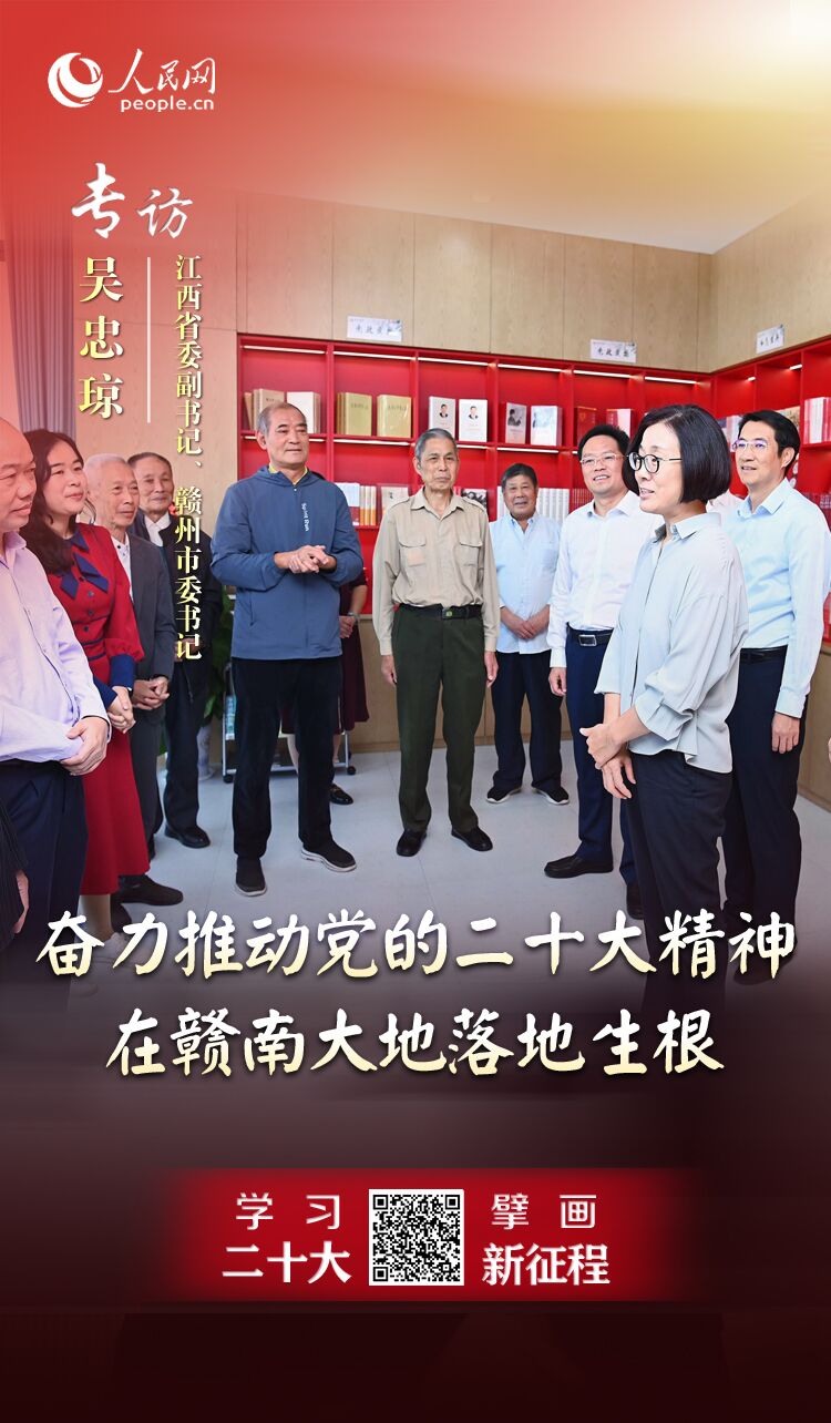 【編者按】為深入學習宣傳貫徹黨的二十大精神,把思想統一到黨的二十大精神上來,把力量凝聚到黨的二十大確定的各項任務上來,人民網江西頻道聯合江西省委網信辦網絡新聞傳播和評論處推出“學習二十大,擘畫新征程”系列訪談節目,聚焦江西各地各部門如何精心組織“學”,廣泛深入“講”,結合實際“干”,推動黨的二十大精神落實到發展的各方面,以踔厲奮發、勇毅前行姿態奮進新征程。近日,江西省委副書記、贛州市委書記吳忠瓊接受了我們的專訪,以下為訪談實錄: