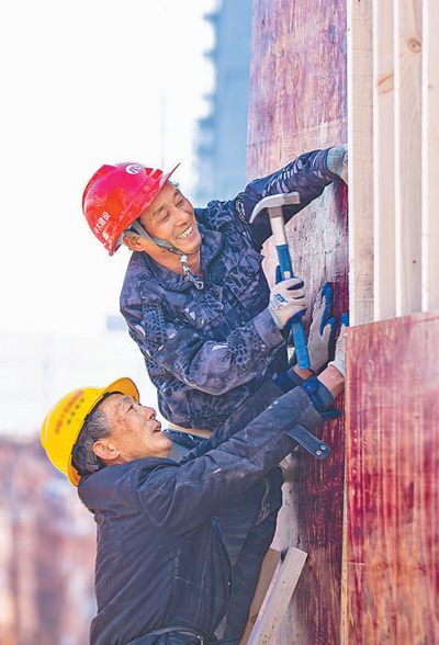 1月1日,江西省弋陽高新區標準廠房建設施工現場,工人們搶抓工期,確保項目早日建成。 黃祥龍攝(人民視覺)