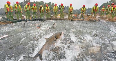 日前,江西省新余市仙女湖迎來漁業豐產。當地年魚產量500萬斤以上,暢銷全國市場,成為群眾增收致富的重要渠道。圖為1月2日,仙女湖冬捕現場。