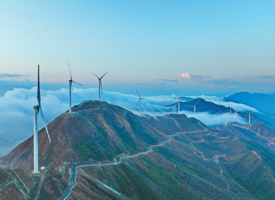 江西省贛州市上猶縣雙溪鄉草山仙鵝塘風力發電場,數十臺風力發電機源源不斷輸送著清潔能源。朱海鵬攝(人民視覺)