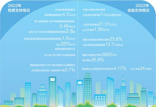 2022年,我國新增減稅降費及退稅緩稅緩費超過4.2萬億元,企業每百元營業收入稅費負擔下降2.7%