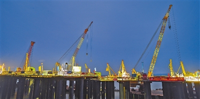三月一日,江西省九江市紅光國際港湖口縣銀砂灣碼頭項目正在掛圖作戰,全力加速推進建設。該項目建成后將成為公、鐵、水多式聯運的水上交通樞紐。圖為銀砂灣碼頭項目正在挑燈夜戰。